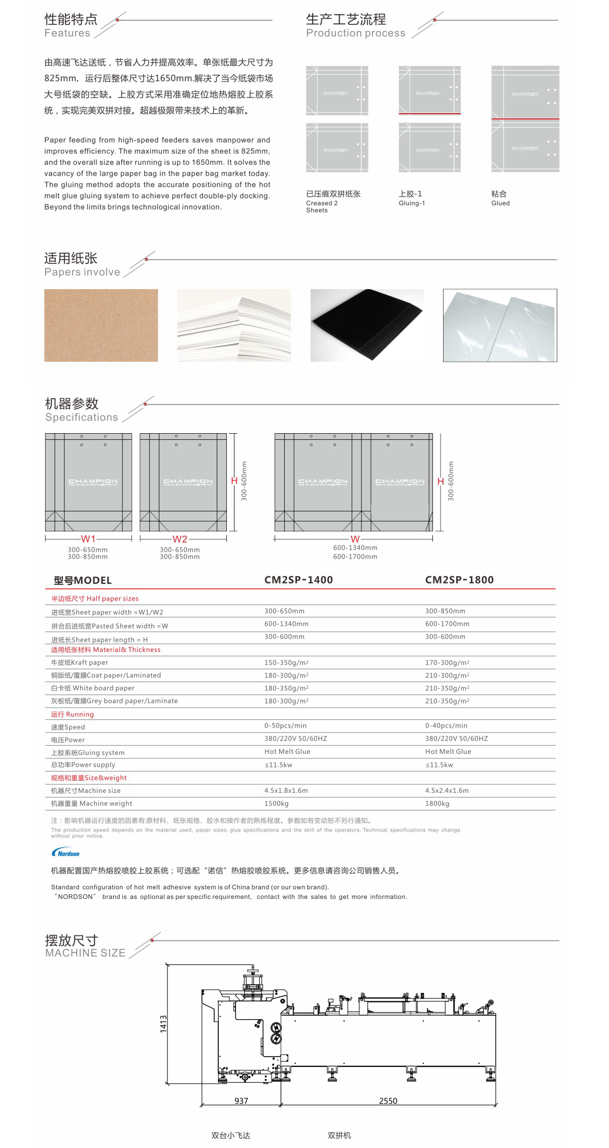 • 纸袋机使用的纸张大小、厚度,范围广