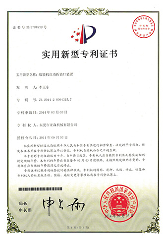 实用新型专利证书