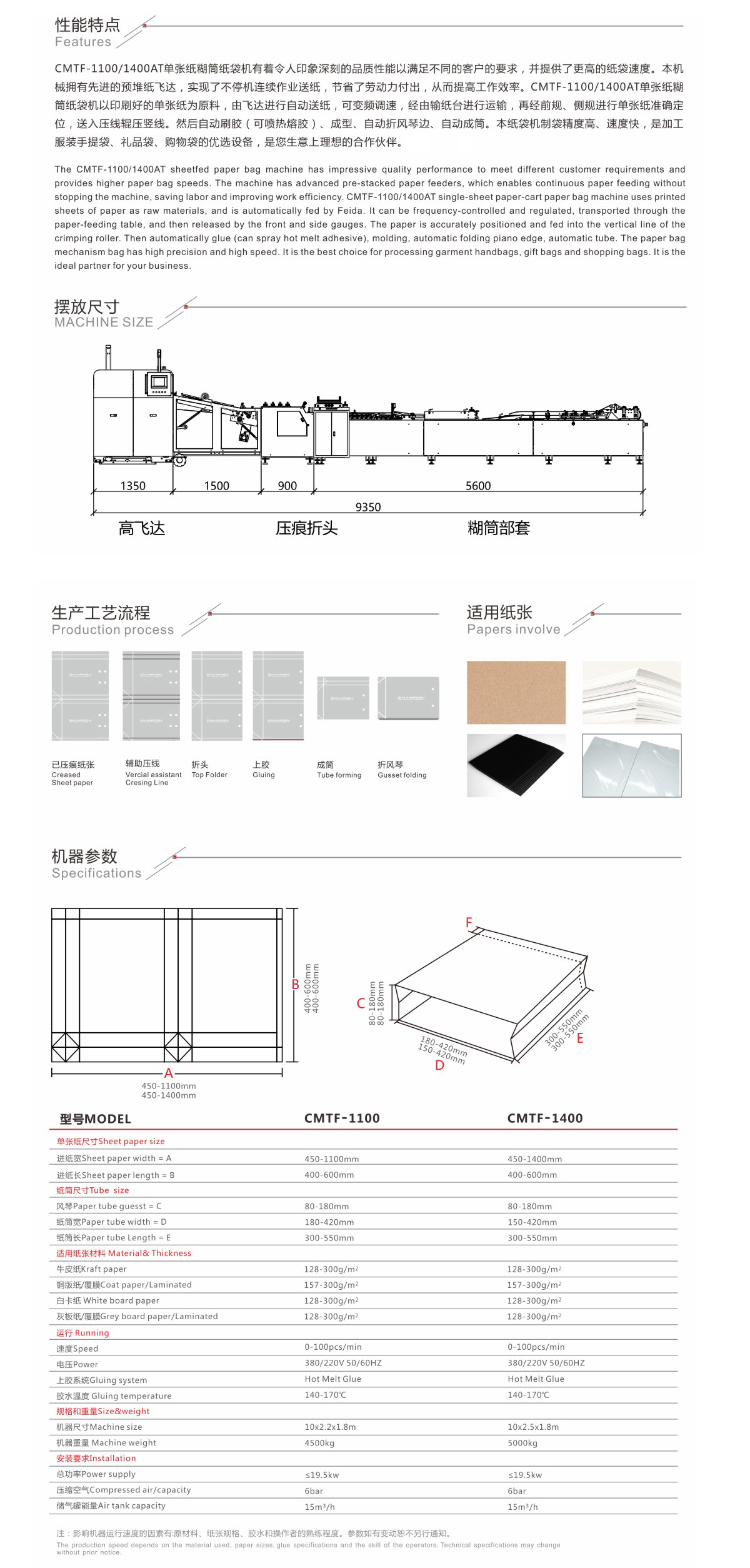 - 纸袋机使用的纸张大小、厚度,范围广