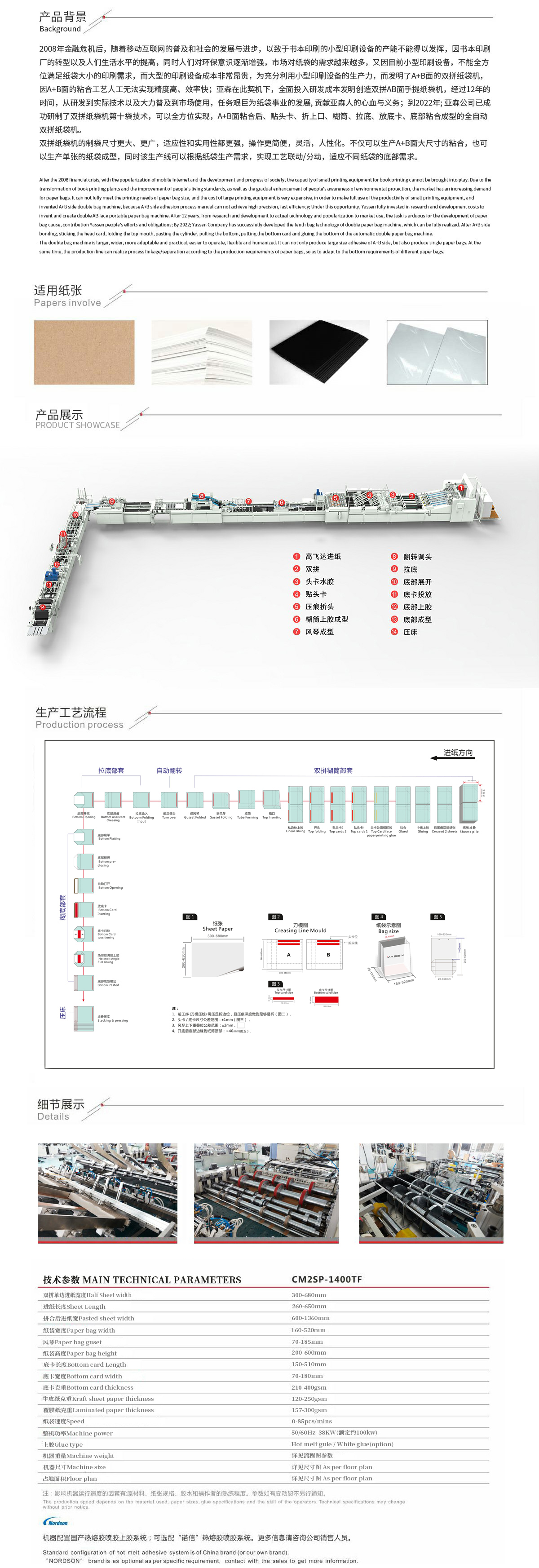 • 纸袋机使用的纸张大小、厚度,范围广